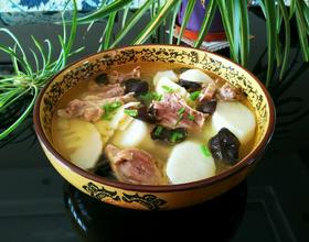 放入笋片儿/山药块儿/木耳。中火炖至山药熟。(我是怕吃不完,所以分了一些出来另起的锅)