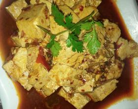 锅中热油,至七成,放辣椒,蒜,姜花椒,葱,豆瓣,生抽,老抽炒出香味加入豆腐煸炒。