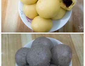 - 1. 准备好材料,两碗白面掺一小把黑米面搅拌均匀 同样的方法,两碗白面掺一碗玉米面,搅拌均匀