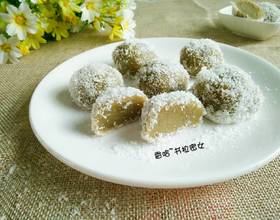 糯米球要趁热沾椰蓉,凉了就不好沾了。