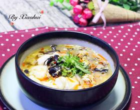 - 11. 水开后放入粉丝、糖、白胡椒面、水淀粉,盐、味精调味,小火熬煮