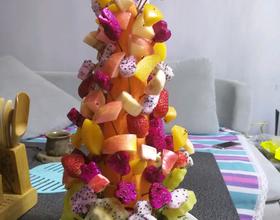 水果块儿切的不要太小,盘底可以铺蔬菜做装饰