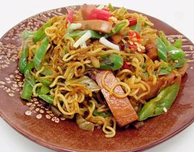 泡面柔软带油,青椒微微辣,火腿夹有荤菜的气息,酸菜开胃,这炒泡面,其实不简单!