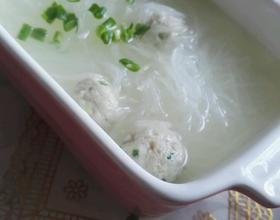 肉馅里放葱花,姜末、耗油、生抽、白胡椒粉、花椒油,少量盐。搅拌均匀后揉成丸子状~