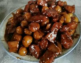 把糖炒好后放入五花肉 放入葱 姜 放入生抽 辣椒 老抽 大料