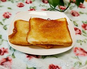 两面都充分的粘裹上焦糖,出锅放在小于吐司片的小盘上,架空晾凉。