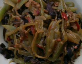 把青笋和木耳翻炒!在将炒好的肉丝也到入翻炒!少时将花椒粉、鸡精、盐放入翻炒!