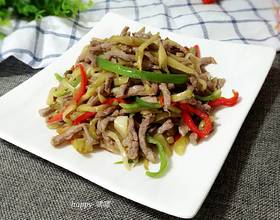 立马放入备用的肉丝翻炒片刻即可出锅装盘。(如果在炒的过程中感觉锅里有点干,可以在锅边淋少许的开水)