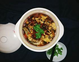 - 3. 陶瓷锅放10g橄榄油预热,放入10g姜蒜花椒干辣椒爆香,加入20g李锦记豆瓣酱继续炒制,味道出来倒入高汤500ml,盖上锅盖煮两分钟烧开放500g腌制的鱼片,煮两分钟倒入适量醋调味即可出锅。