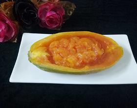 放盘子里,入微波炉大火转5-7分钟,根据木瓜的大小,用手捏打软了就行