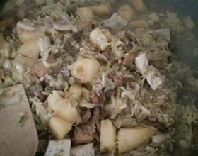 其实基本和烩酸菜一样,只不过肉菜都是自己家种的。大家可以看家里人*