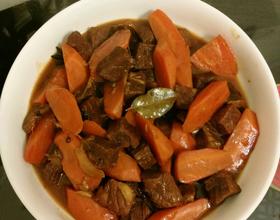 牛肉炖至30分钟后倒入红萝卜炖20分钟出锅前五分钟加入适量咸盐!