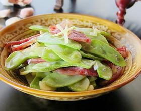 1.我个人觉得扁豆用广式香肠来炒,味道最为契合,酸甜微咸的香肠既不会夺去扁豆本身鲜嫩微甜的口感,更能相互烘托交融,再撒入一些葱、姜、蒜进去,非常之香。如果你偏爱腊味或辣味香肠等偏重口感来搭配,那么调味汁的糖和盐的比例要稍微调整下哦