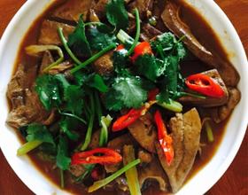 炒熟了放生粉勾芡收汁上盘。上盘放点香莱。完工开吃