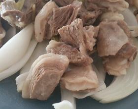 准备葱姜,香叶,八角等调料,半颗洋葱切大块。