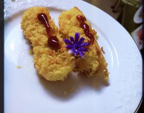 - 8. 再重复一次裹淀粉、鸡蛋液、方便面碎,放置盘中备用