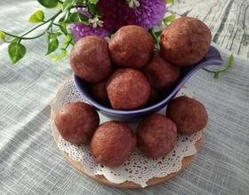 炸紫薯球的时候要不停用筷子搅拌,以免炸焦。