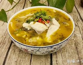 待汤锅煮沸后,加入适量的鸡精,好吃的酸菜鱼就做好了。