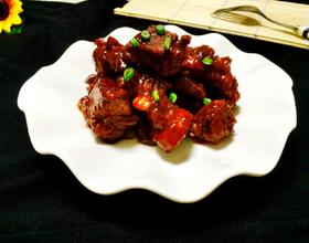 加入三勺红腐乳汁和两块红腐乳翻炒