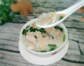 - 8. 待粥煮至稍微有点软,放进切好的干鱿鱼、腌好的瘦肉、洗干净的虾米和少量油,再用匙子搅拌均匀。