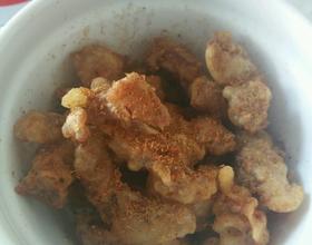 面粉,淀粉,盐,鸡精,十三香,放入碗中,加水,再把切好的肉与其混合,腌制30分钟