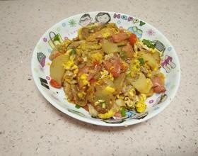 依次放入大蒜葱白辣椒少量盐(加了一点辣椒酱)