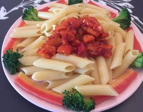 - 4. 烧开水,下通心粉煮15分钟,捞起放入刚刚炒好的汁和几滴橄榄油搅拌均匀即可。