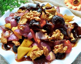 1、依据个人口味,像洋葱、彩椒这样的食材本身可以生吃,我也比较喜欢吃脆的,所以整个菜在烹饪过程中时间很短。但是如果喜欢吃软一点口感的朋友就要多炒一会。2、炒木耳的时候要小心一些,木耳容易爆,别被烫到。3、因为洋葱已经有了很浓烈的气味,所以做这道菜我没有加更多的调味料,只用了盐和生抽。4、摊鸡蛋时锅底会留有一部分底油,切炒好的鸡蛋块中也带油,所以在炒洋葱的时候倒入一点油就可以啦。