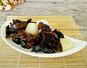 木耳泡发好以后一定要放在开水中焯烫一下。因为放了洋葱,所以就不用再放葱花了