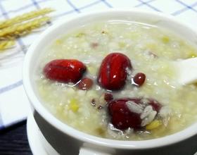 再煮开,加入糯米、小米、红枣、燕麦仁继续煮开,关火焖10分钟