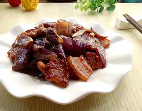 五花肉洗干净,切块,倒入适量生粉抓匀腌一会。