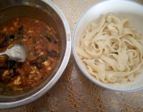 和面时一定要放少许盐,面团活的稍硬一些,这样做出的刀削面才会口感筋道。我家冰箱中部有变温区设定到零下五度,我会多做些面团放在冰箱里冰起来,吃的时候只要打好卤水烧开,削面入锅,很快一顿美味即可上桌。是上班族的快手餐