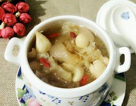 泡发的百合和莲子,放入炖盅。