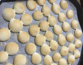 用搅拌棒上下搅拌均匀放入裱花器,然后挤出喜欢的样子120度20分钟左右,这个是130度12分钟的样子