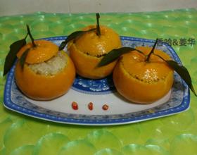 把拌匀的馅装进橘子里面盖上盖装盘。
