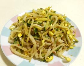 凉皮中加入盐,鸡精,姜粉,蒜末,辣椒粉,用热油泼。