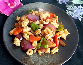 - 9. 倒入鱿鱼翻炒