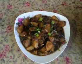 放料酒,白糖,十三香,,尖椒,添水没过土豆