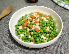 将胡萝卜和豌豆焯水。捞出来备用。(焯水要断生)