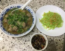 汆入羊肉丸子 煮两分钟 稍后出锅