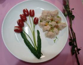 - 7. 装盘隔水蒸10分钟,蒸好后用生粉勾芡,撒上葱花。