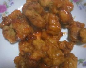 把冰糖番茄酱水倒入锅中,大火煮开,勾个芡,然后把鸡块倒入锅中,然后搅拌,就可以放入盘中啦,开饭啦