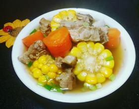 半小时后,将排骨和胡萝卜块加进去,再炖十分钟。