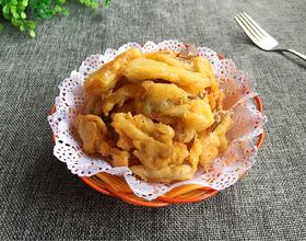 等锅中的油再次烧热时放入平菇复炸至金黄色