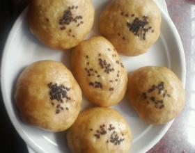 准得材料,面粉,泡打粉,炼奶,鸡蛋,油,额~芝麻没拍