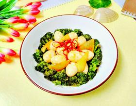 小火爆香葱。放鹌鹑蛋。中火炒匀。