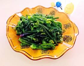 全程大火,红油菜苔不易久炒,刚断生时出锅又脆又嫩,清香味更浓。我炒蔬菜都是少盐少油,少味精或者不用。亲,可以根据自己的喜好来决定。