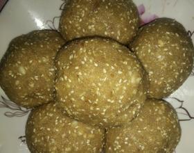 将芝麻炒至焦红色,