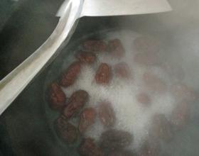 先将大枣放入锅内蒸制,加水。加枣。加糖