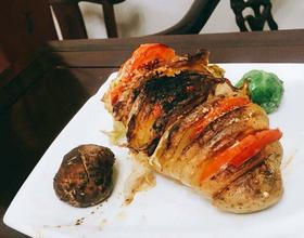 1.意大利综合香料和披萨草,卡夫卡芝士粉可不用2.煮制土豆时注意不要将土豆煮烂,刚好变软就好3.切土豆片时切记不要将底部切断,但要尽量切深4.烤箱烘烤的时间要以实际情况为准,土豆外表微焦即可5.西红柿尽量切薄,否则很难夹进土豆里